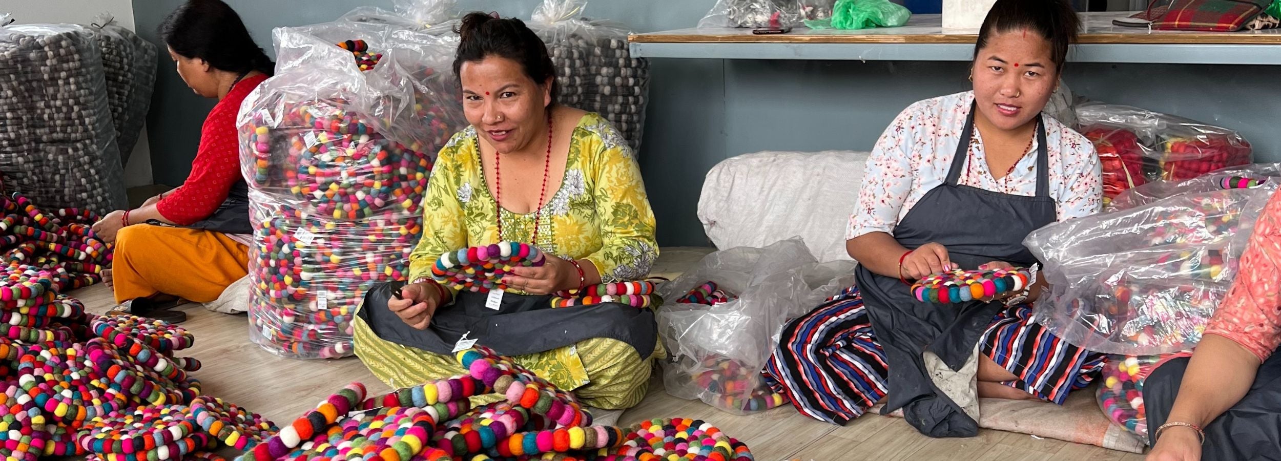 Nos créations sont fabriquées à la main au Népal par une communauté de femmes avec qui nous collaborons dans le cadre d’un partenariat équitable et durable.