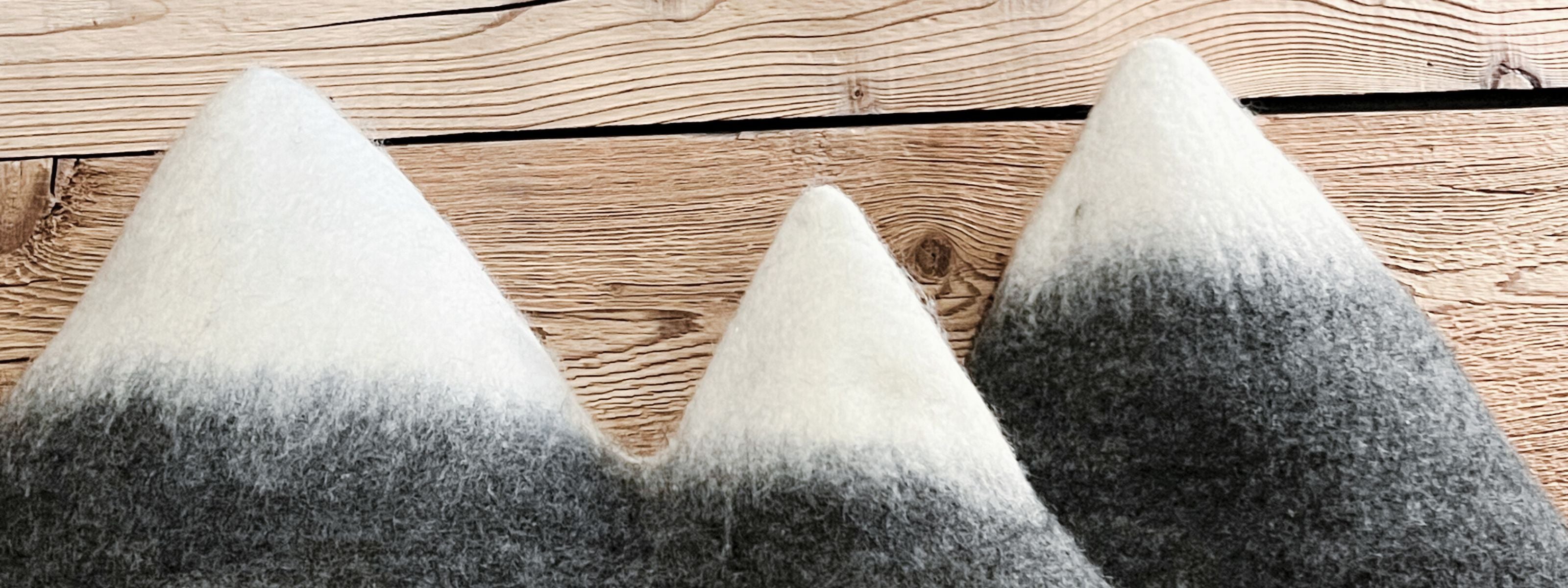Coussin décoratif Montagne double en feutrine - Création éthique et artisanale New HeidiCoussin décoratif Montagne double en feutrine - Création éthique et artisanale New Heidi