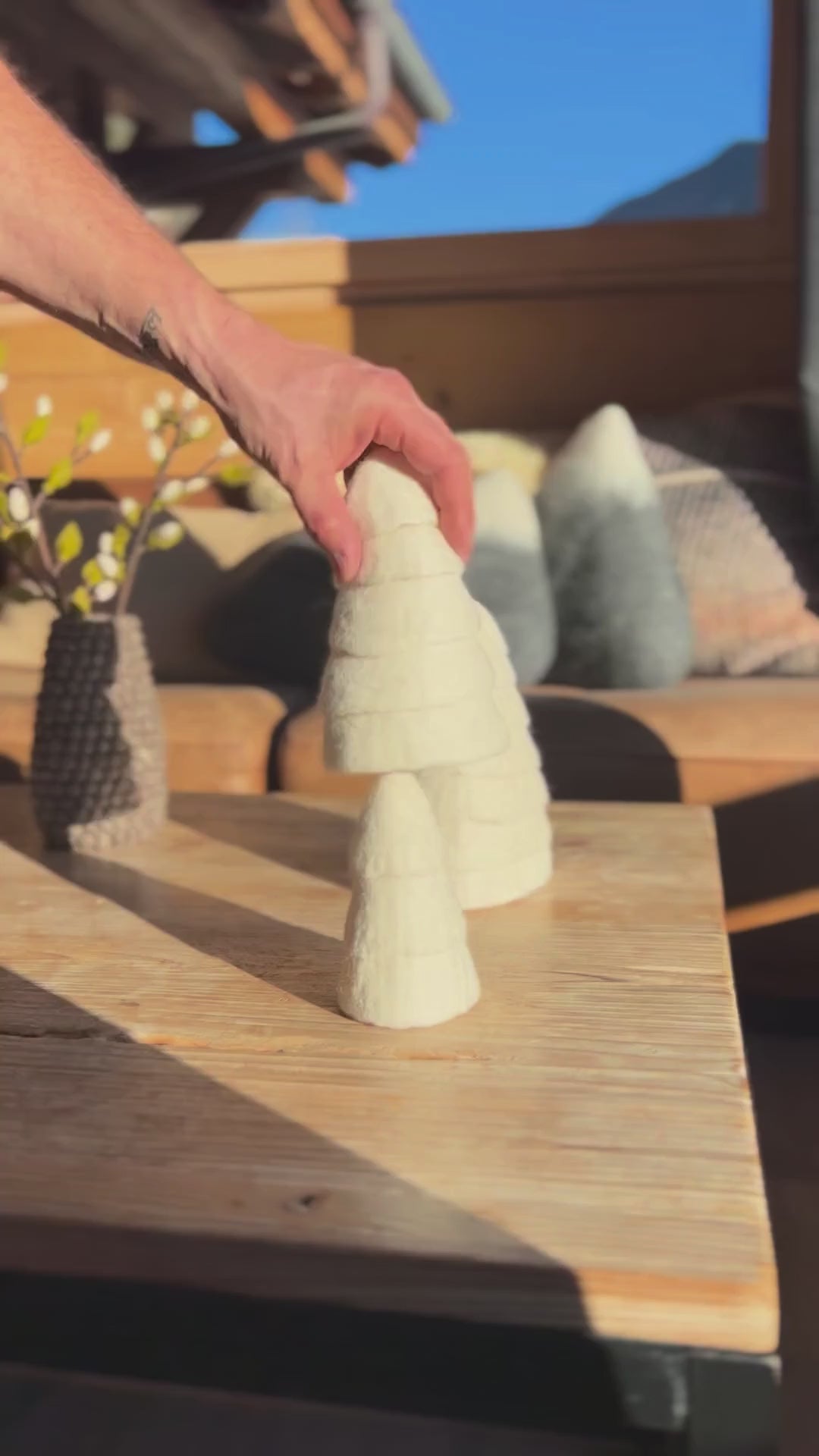 Fabriqués à la main en 100% laine bouillie, ces sapins décoratifs allient l’élégance de l’artisanat à la douceur des matières naturelles. Inspirés par la beauté des forêts enneigées, ils s’intègrent parfaitement dans une décoration hivernale ou montagnarde, que ce soit sur une étagère, un buffet ou en centre de table.